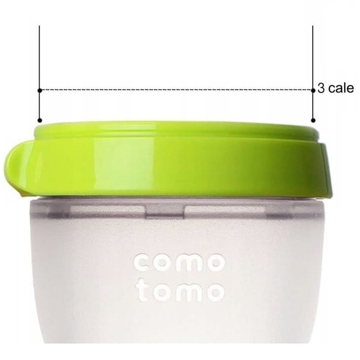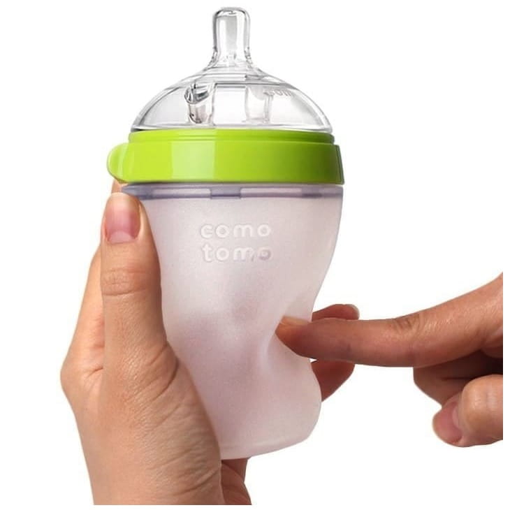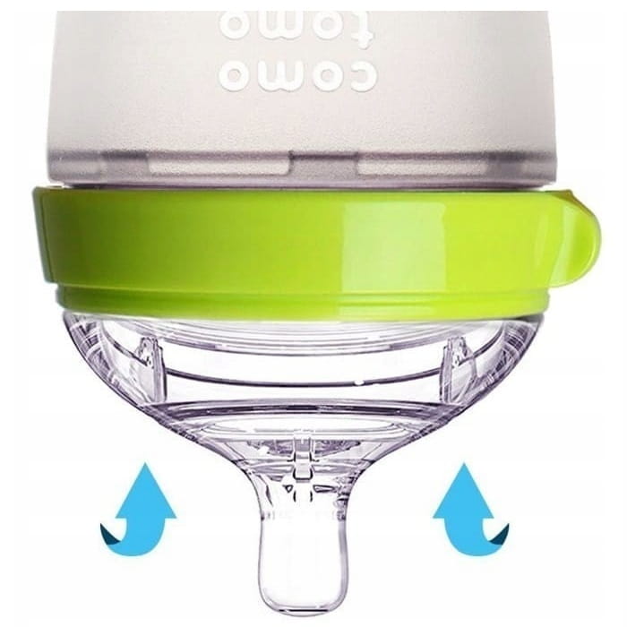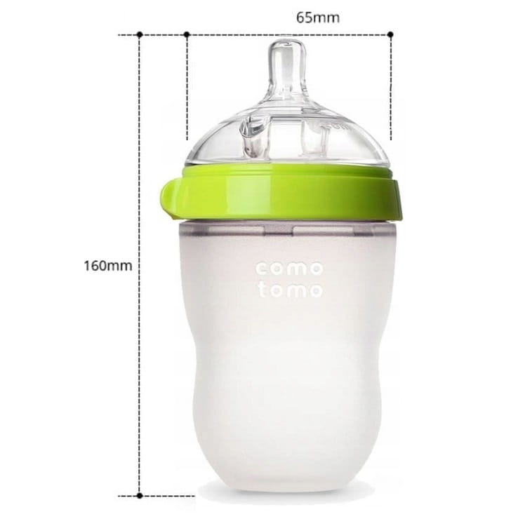 Butelki Comotomo wykonane z silikonu spożywczego najwyższej jakości. Silikon jest w 100% biokompatybilny, nietoksyczny i nie powoduje alergii. Ważną jego cechą jest doskonałe tolerowanie przez organizm ludzki. Specyficzna właściwość silikonu jaką jest jego "oddychanie" powoduje, że posiada nieograniczoną przepuszczalność dla cząsteczek tlenu, zabójcza dla organicznych patogenów beztlenowych jak bakterie czy pleśnie.