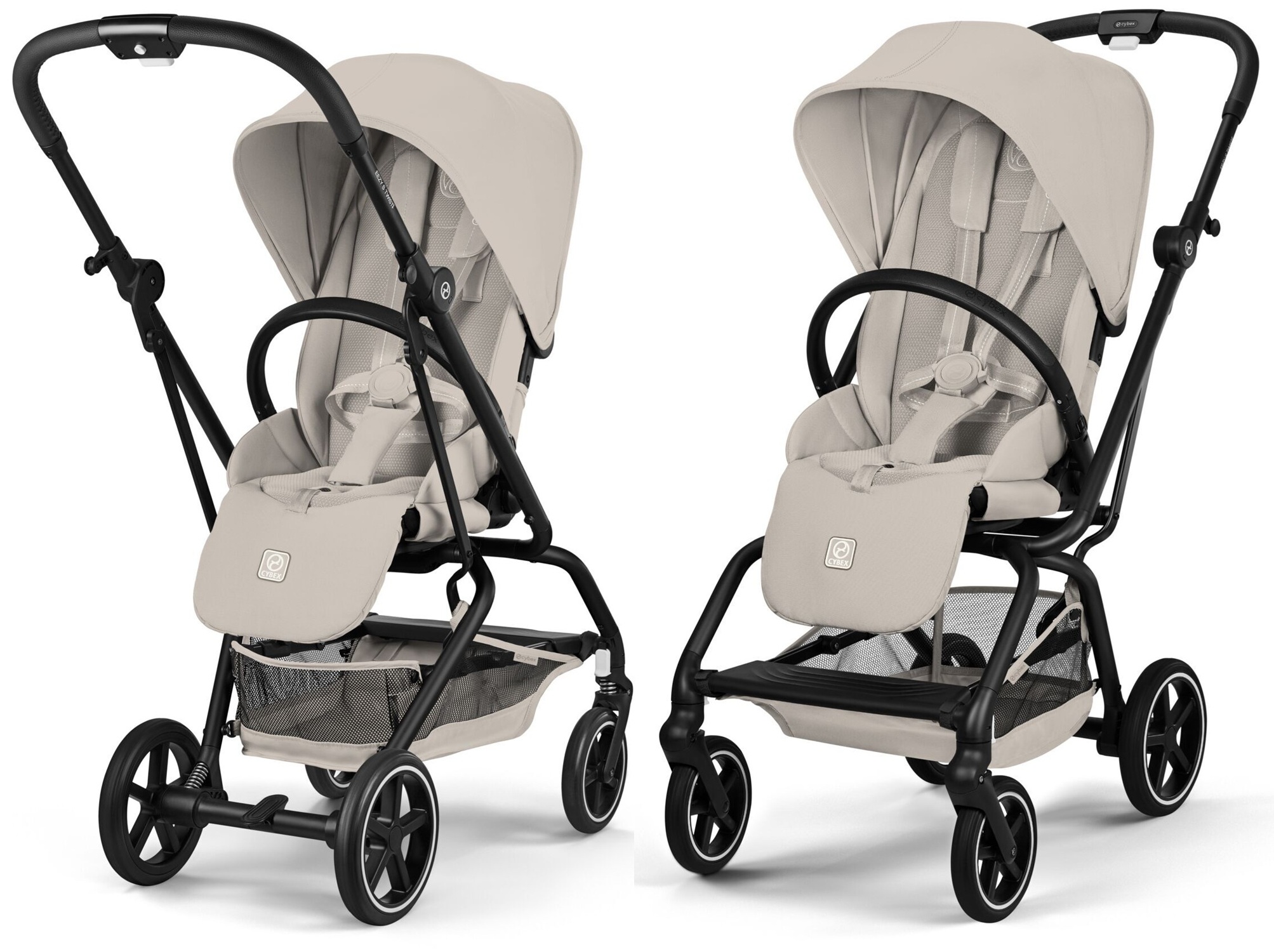Cybex Eezy S Twist+2 jest wielofunkcyjnym wózkiem spacerowym. Jego najważniejszą cechą jest możliwość płynnego obracania siedziska przodem lub tyłem do kierunku jazdy, bez konieczności wypinania go ze stelaża.