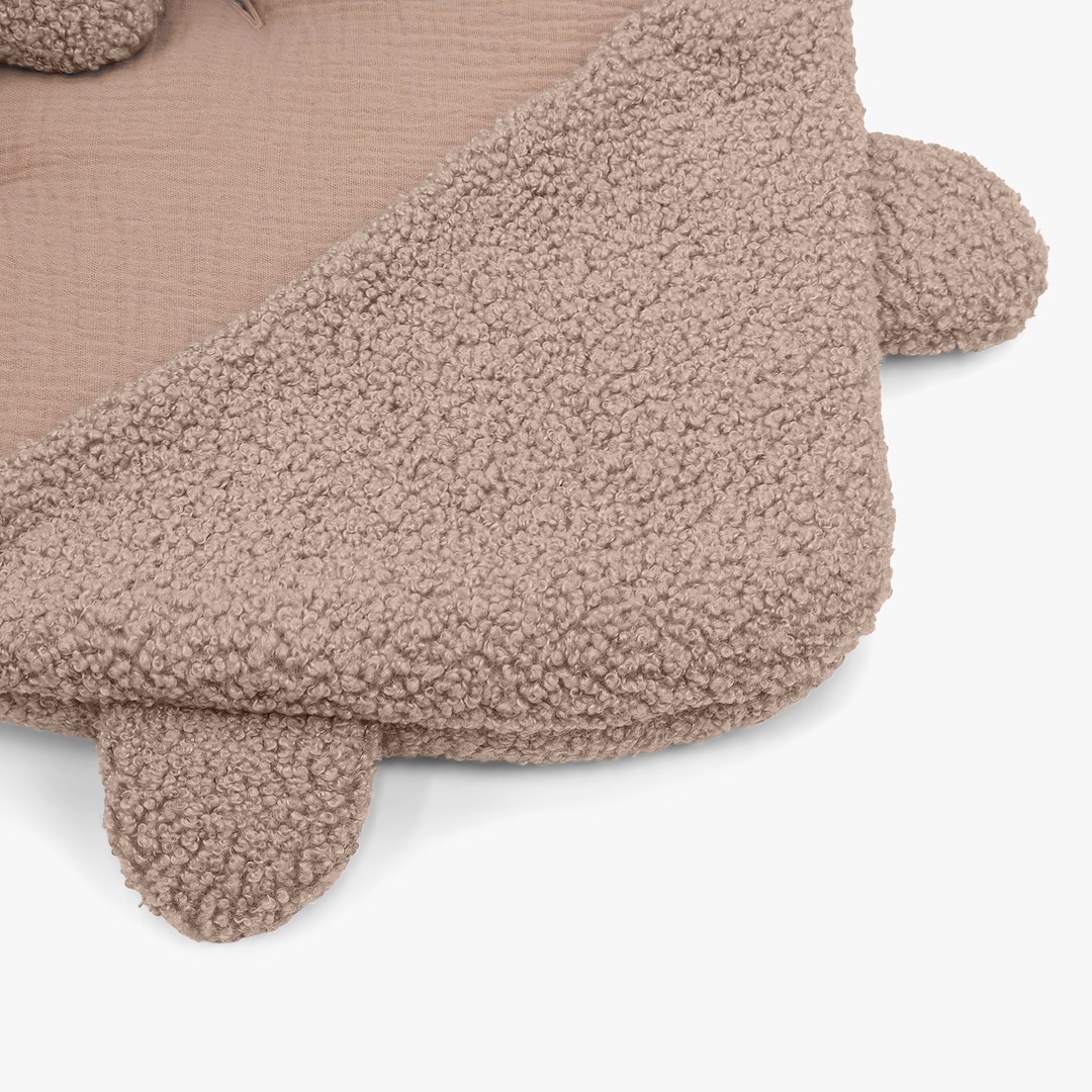 Funkcjonalny kapturek z uroczymi uszkami misia jest zintegrowany z otulaczem, skutecznie chroniąc główkę przed chłodem.