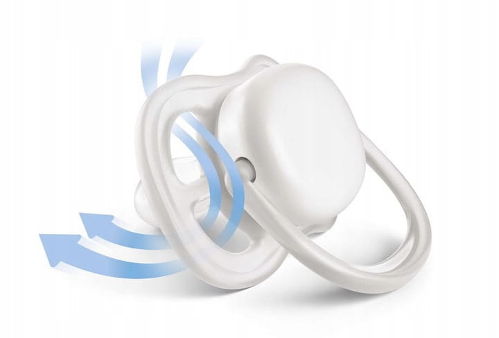 Smoczek ultra air został zaprojektowany z myślą o swobodnym przepływie powietrza, dzięki czemu wrażliwa skóra dziecka oddycha.