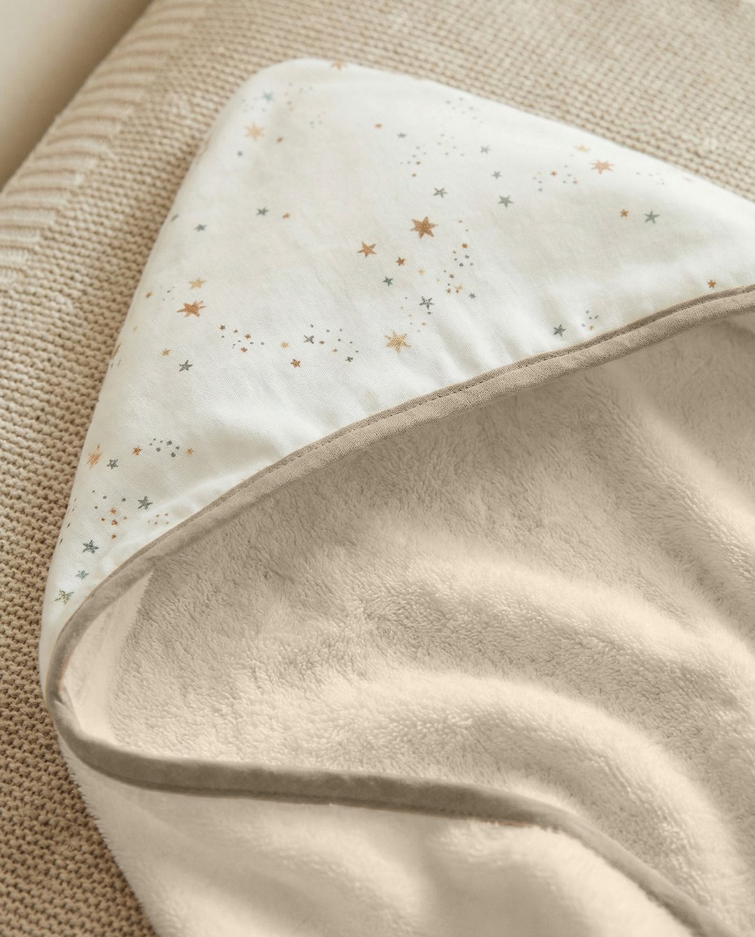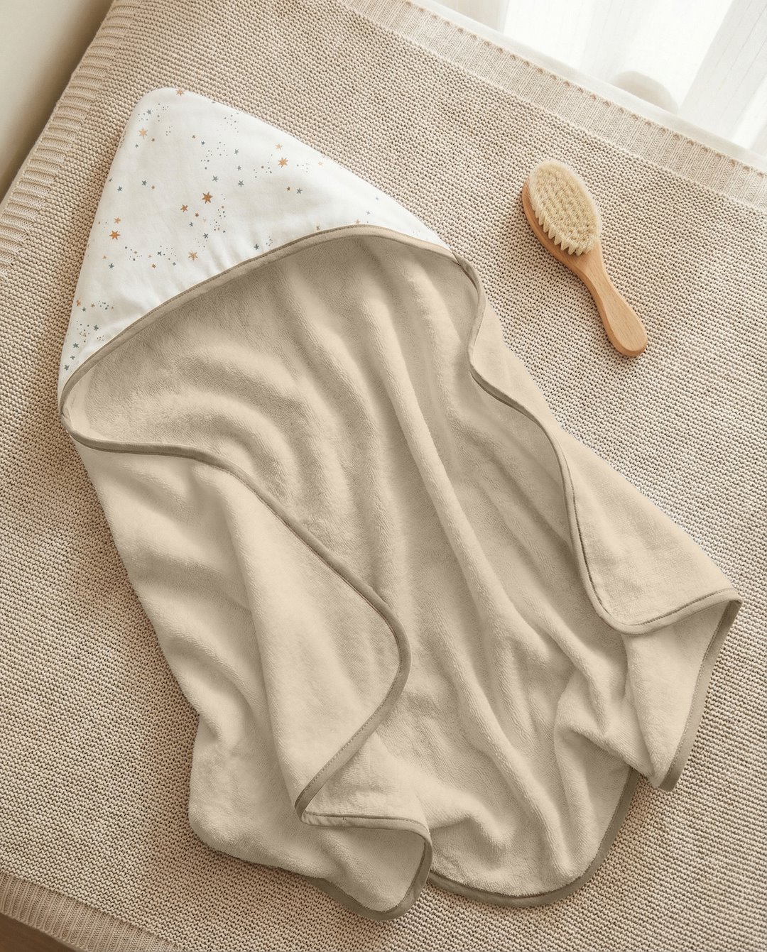 2. Praktyczny design z kapturkiem: Dostępny w rozmiarze 50 × 120 cm z doszytym kapturkiem, ręcznik jest łatwy w użytkowaniu podczas owijania i otulania dziecka po kąpieli, zapewniając mu ciepło i komfort.