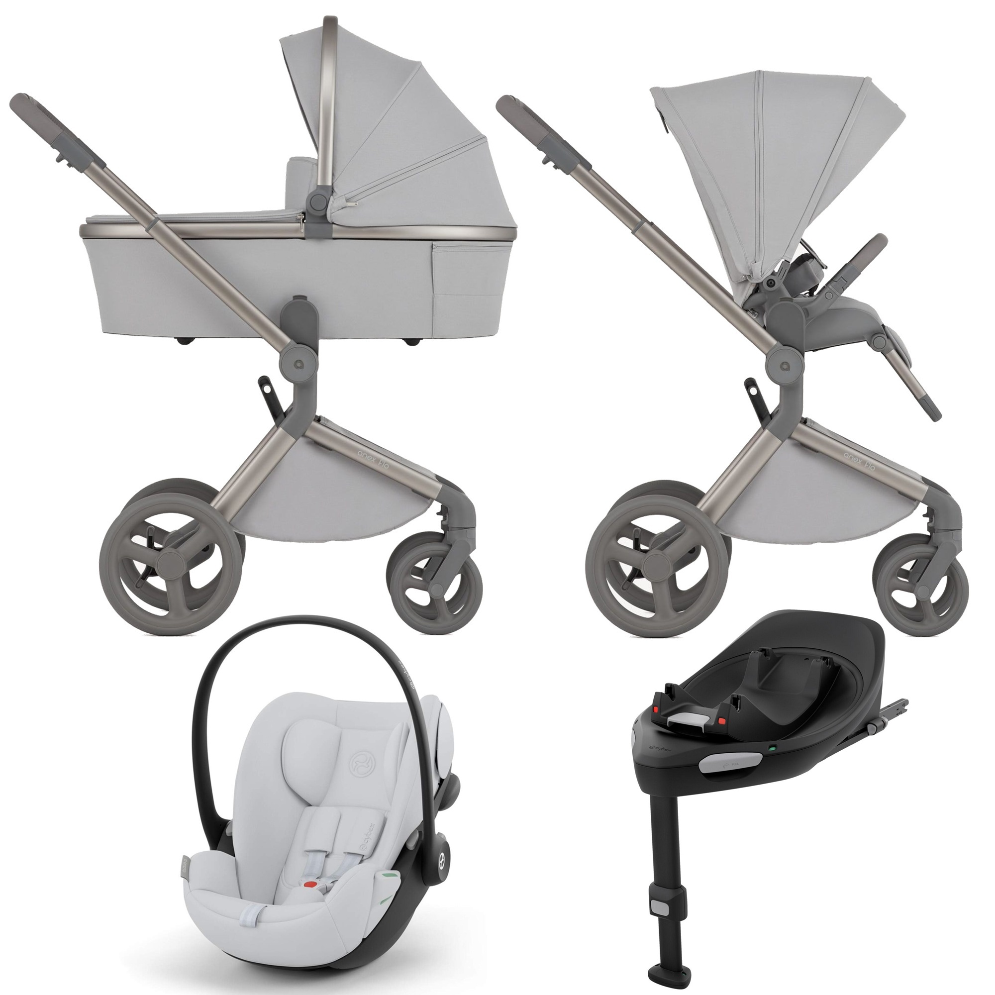 Na stelażu wózka Anex Flo można zamontować foteliki dla noworodka firm t.j. Cybex, Maxi Cosi, Avionaut, BeSafe, Britax Romer i innych. Adaptery do montażu fotelika są w zestawie.