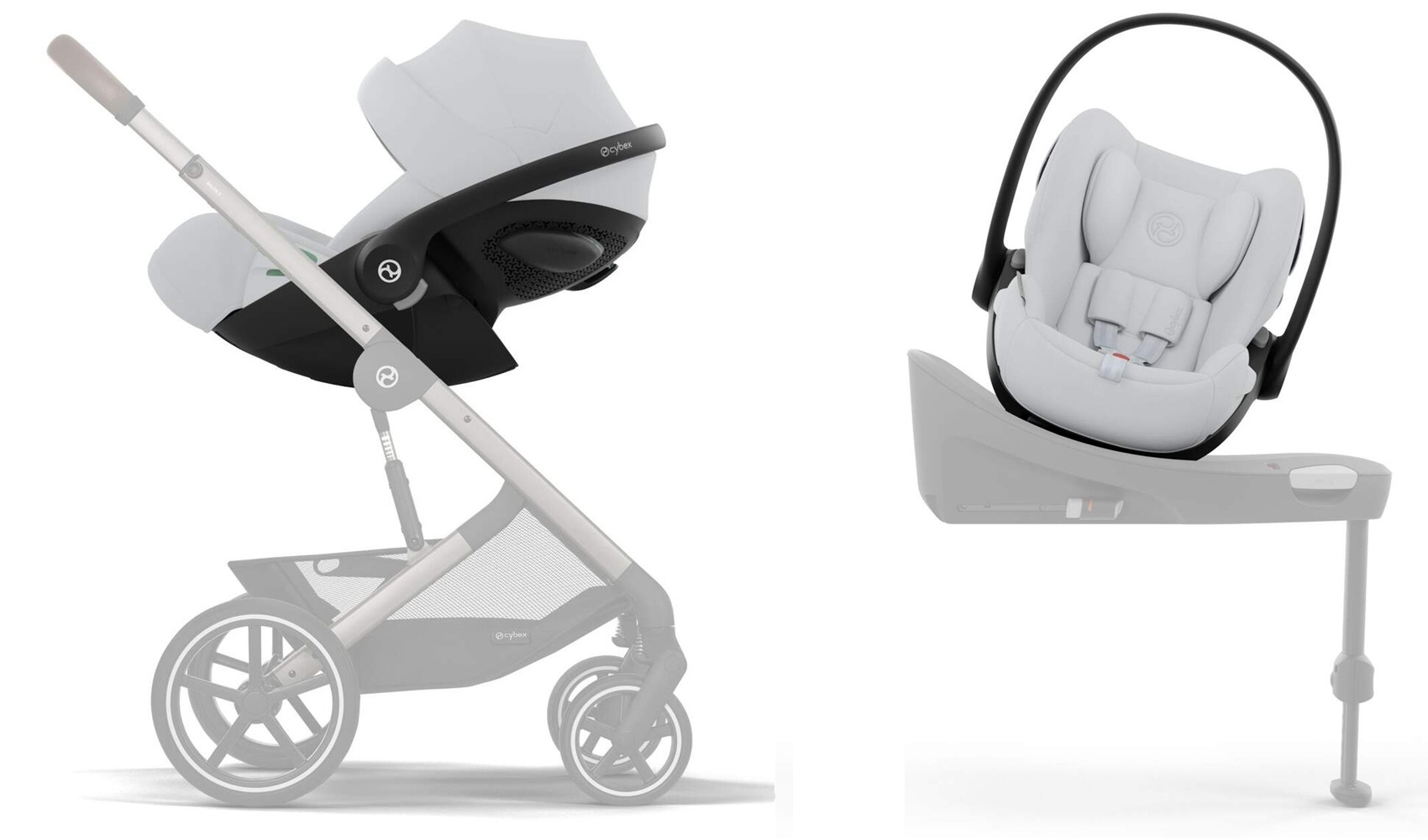 - fotelik dla noworodka Cybex Cloud G i-Size. Proponowany kolor do zestawy Fog Grey, możliwość zamiany na dowolny kolor z oferty firmy Cybex.