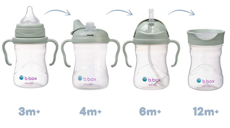 B.Box bidon kubek do nauki picia dla dziecka 240ml zestaw 4w1 / Szałwiowy