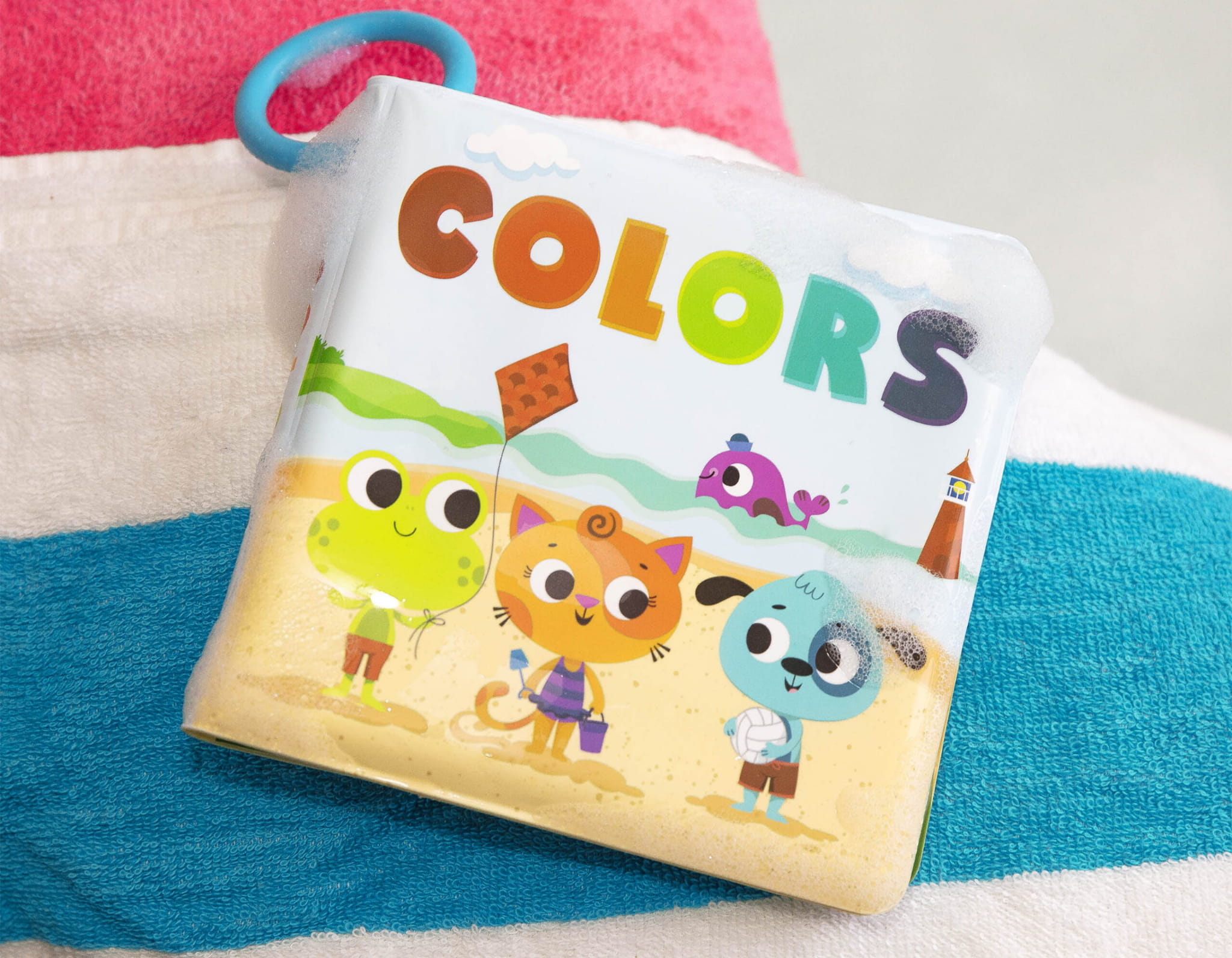 Dodatkowo praktyczny pierścień – zarówno do chwytania przez małe paluszki, jak i do wygodnego zawieszenia książeczki do wyschnięcia po skończonej kąpieli.