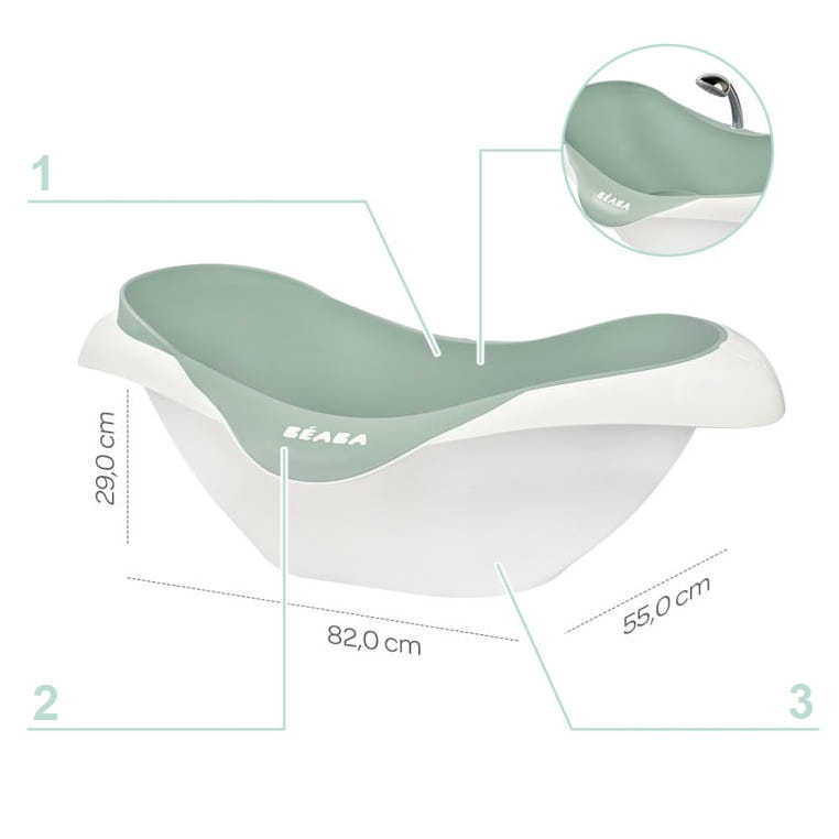 Wanienkę można stosować zarówno samodzielnie, jako wolnostojącą, lub stawiając ja na dedykowany stojaku do wanienki Beaba.