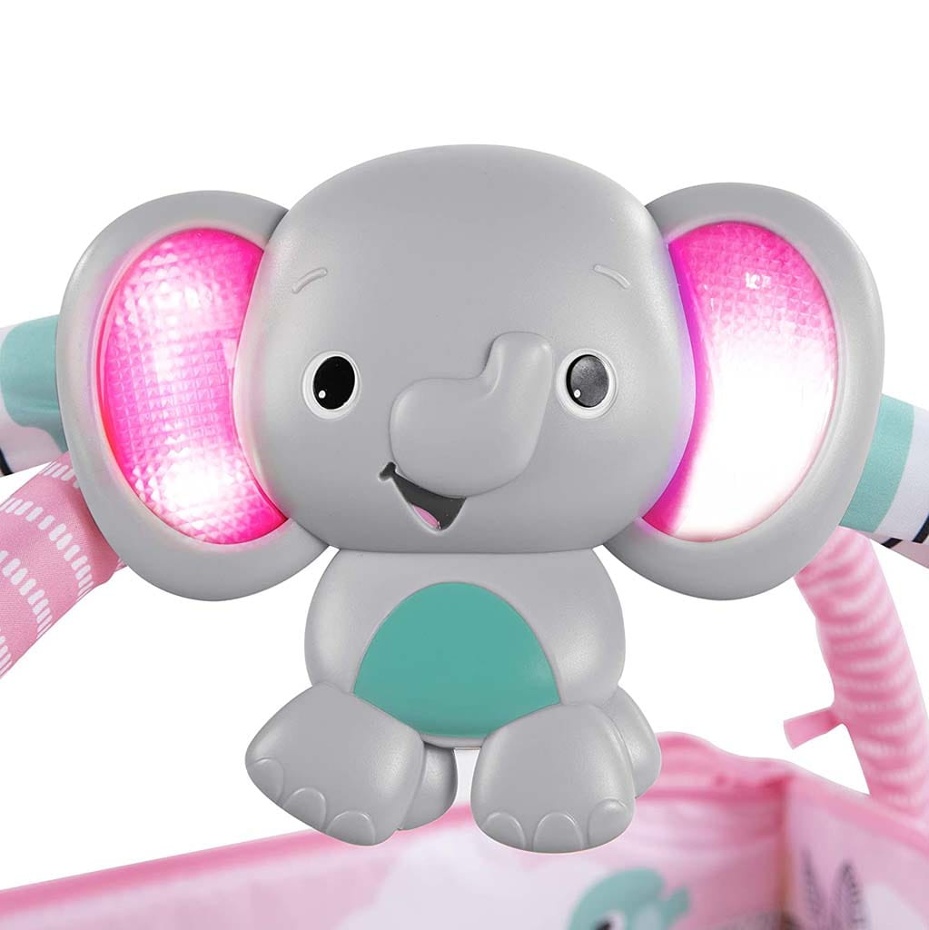 • Wesoły słonik świeci się i gra melodyjki przez 20 minut (możesz też odpiąć go i zabrać z Wami na spacer)