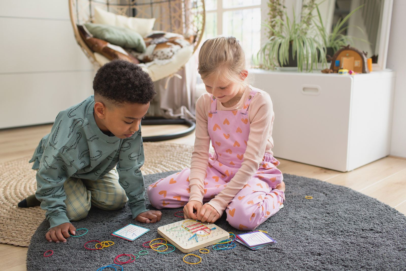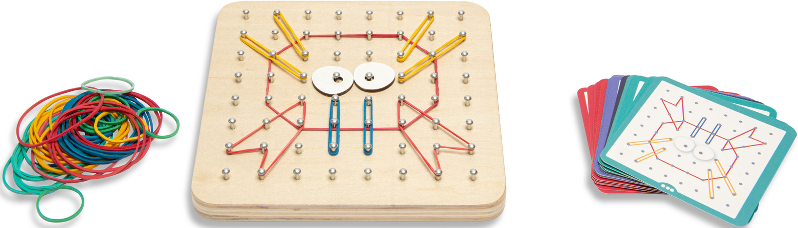 Rozłóż tablicę geoboard i przygotuj gumki.
