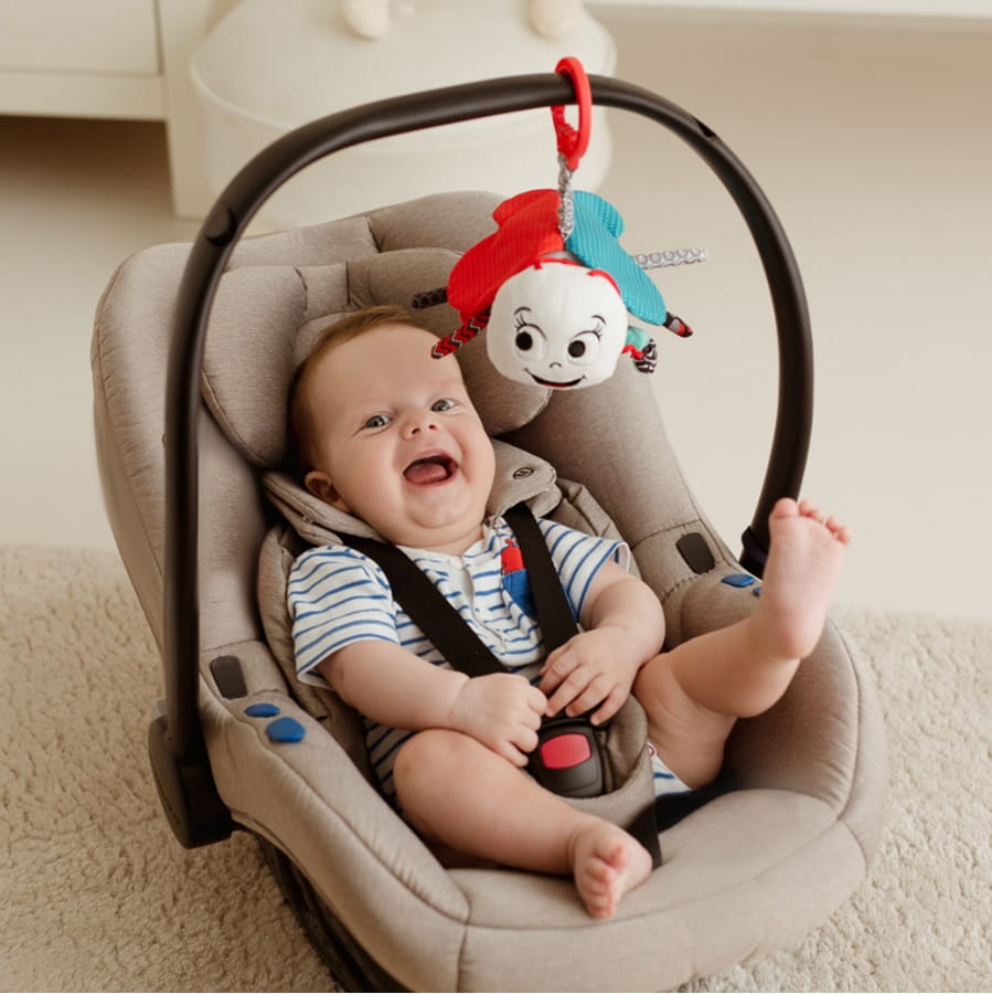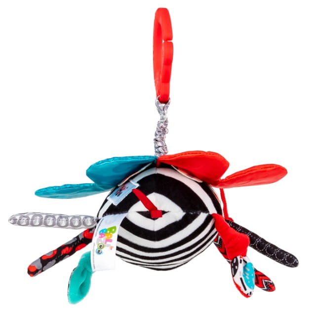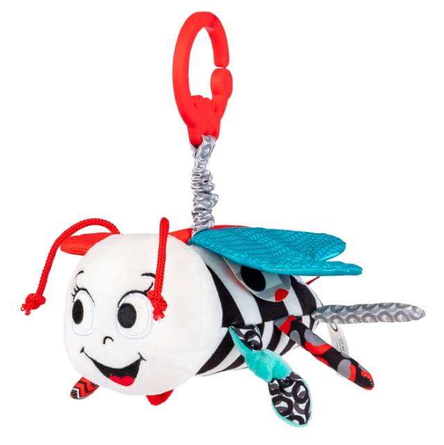 Kontrastowa pszczółka to wymarzona towarzyszka pierwszych zabaw! Uszyta z wzorzystych materiałów o zróżnicowanych fakturach, stymulować będzie zmysły malucha i inspirować go do sensorycznego poznawania świata. Pszczółka posiada ukryty dzwoneczek, a dzięki temu, że przyczepiona jest do materiałowej harmonijki, po pociągnięciu w dół, podskoczy, wydając przy tym wesoły dźwięk. Praktyczna zawieszka pozwoli przymocować zabawkę do szczebelka łóżeczka lub uchwytu wózka czy nosidełka, aby mogła towarzyszyć maluchowi w każdej sytuacji.