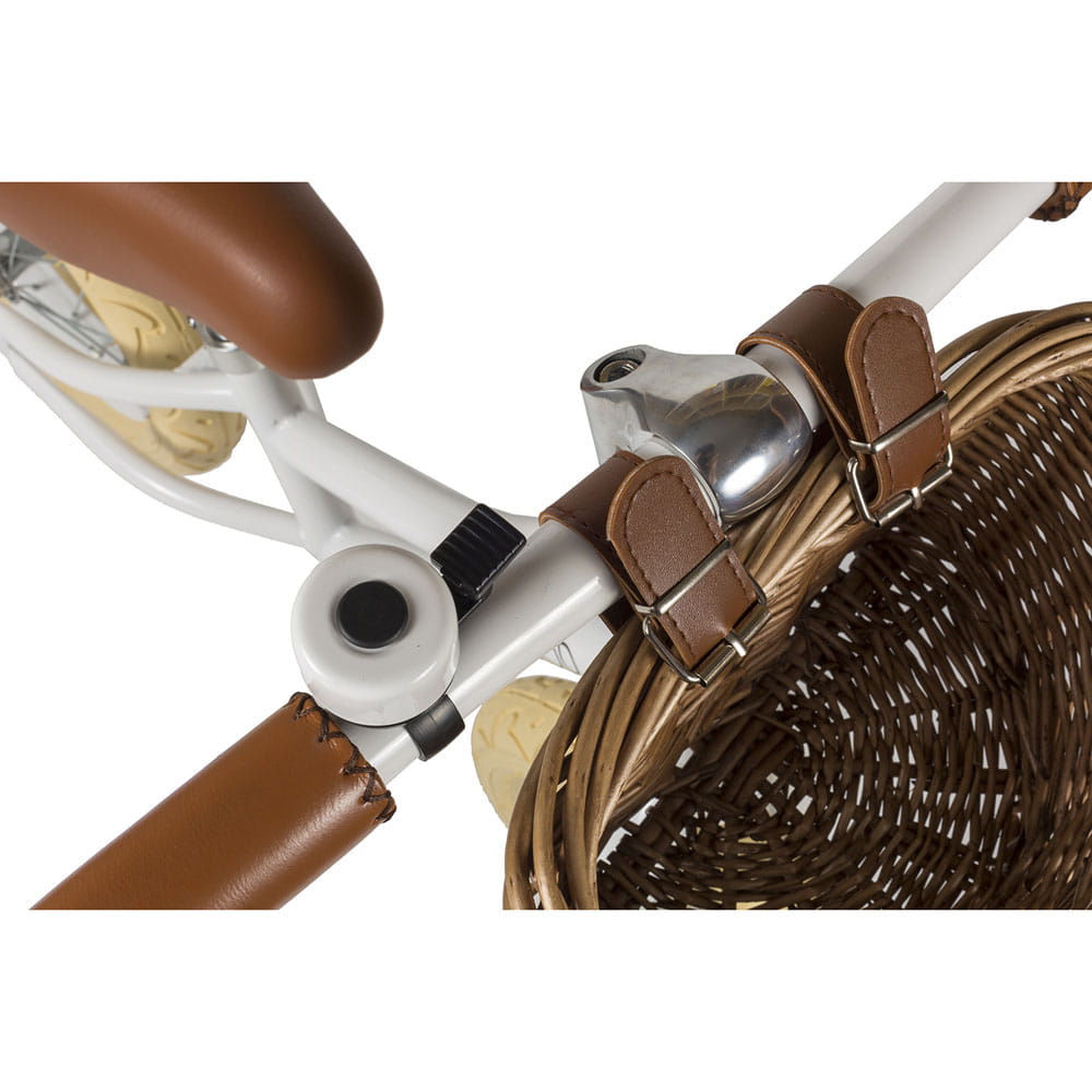 Rowerek wyposażony jest w uroczy dzwonek oraz stylowy kosz wiklinowy, w którym zmieszczą się najpotrzebniejsze skarby Twojego malucha.