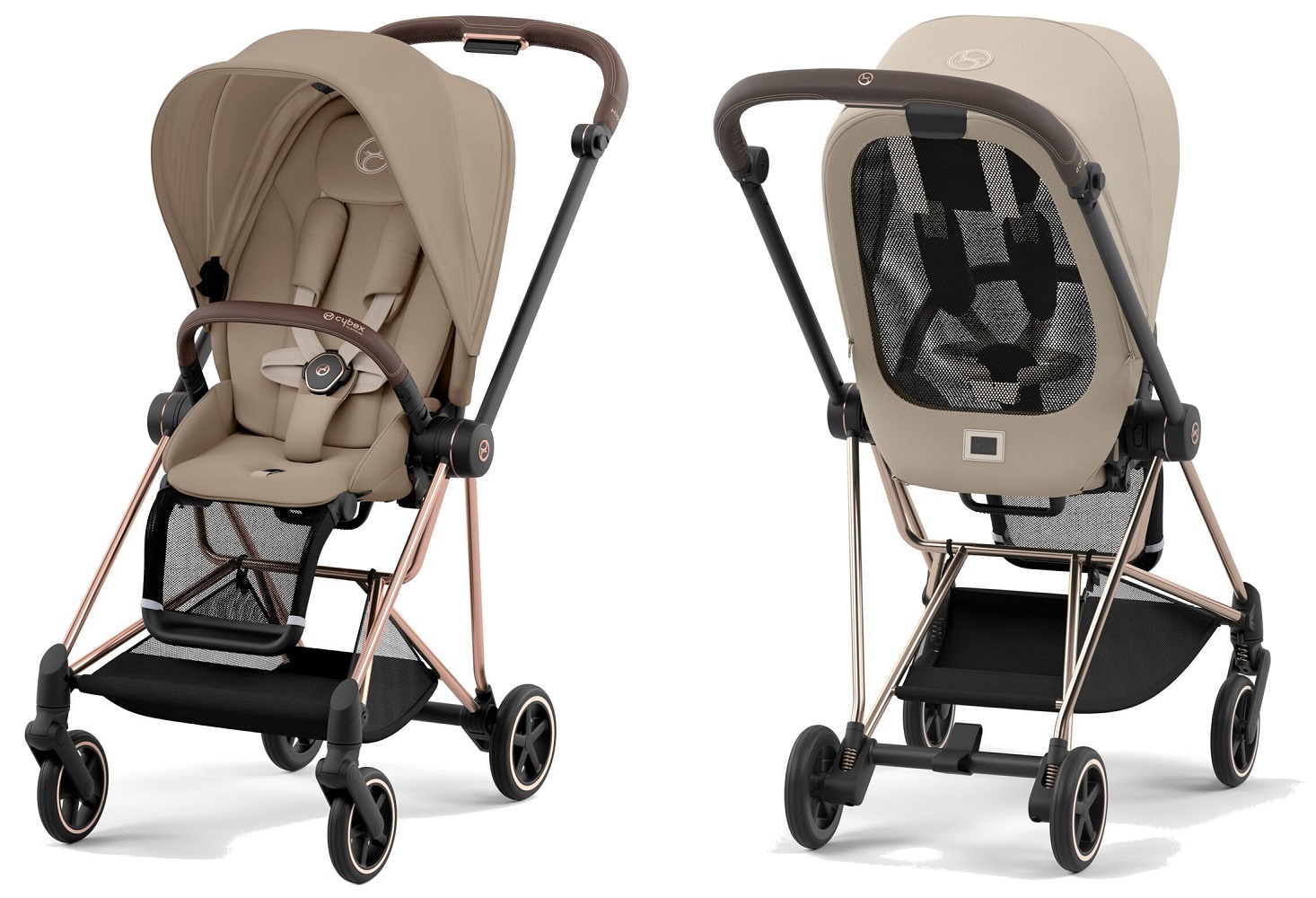 Najnowsza wersja wózka Cybex Mios wyróżniająca się regulacją pasów jak w foteliku samochodowym.