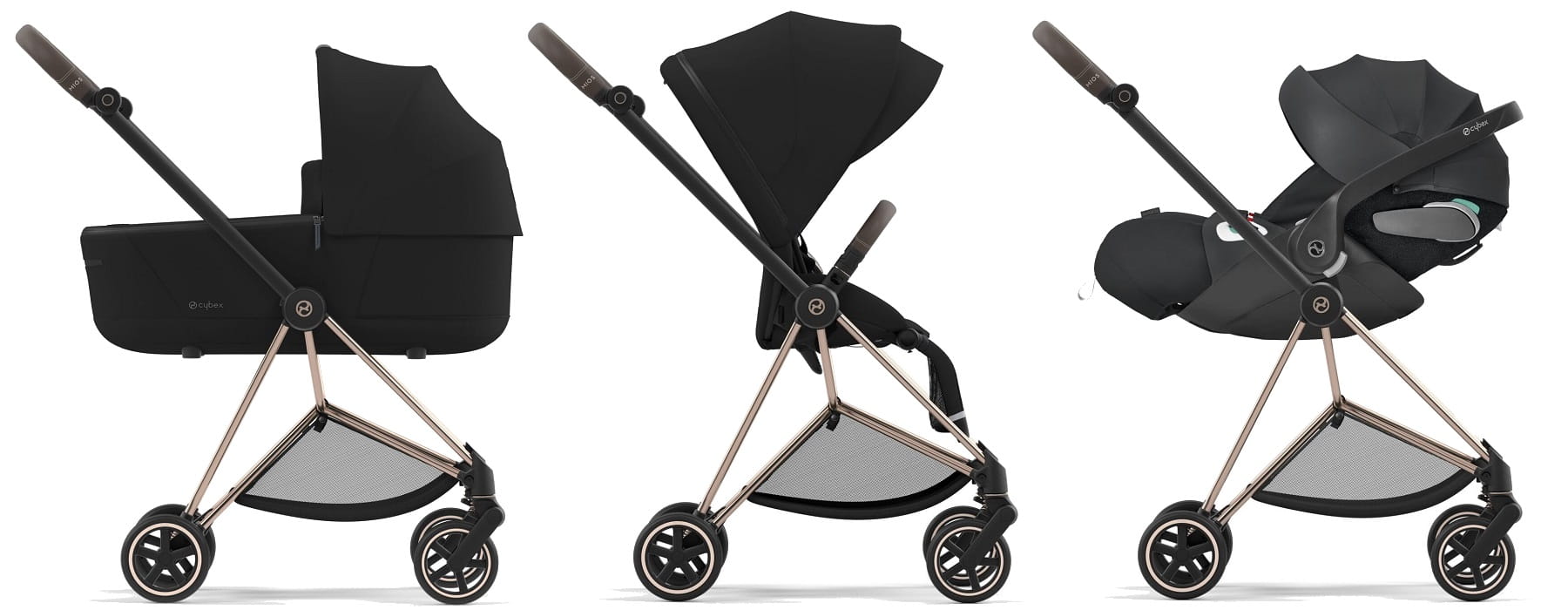 Cybex Mios to wielofunkcyjny wózek spacerowy. NA jego stelażu można zamontować dedukowana gondole dla noworodka, siedzisko spacerowe lub fotelik dla noworodka z grupy 0-13 kg Cybex Cloud Z2 / Cloud T.