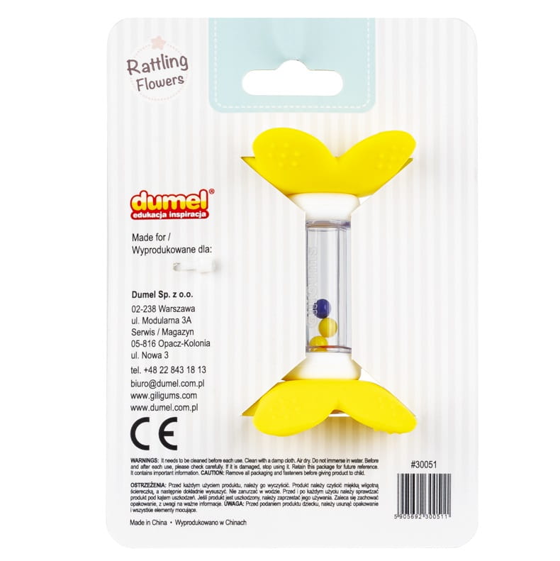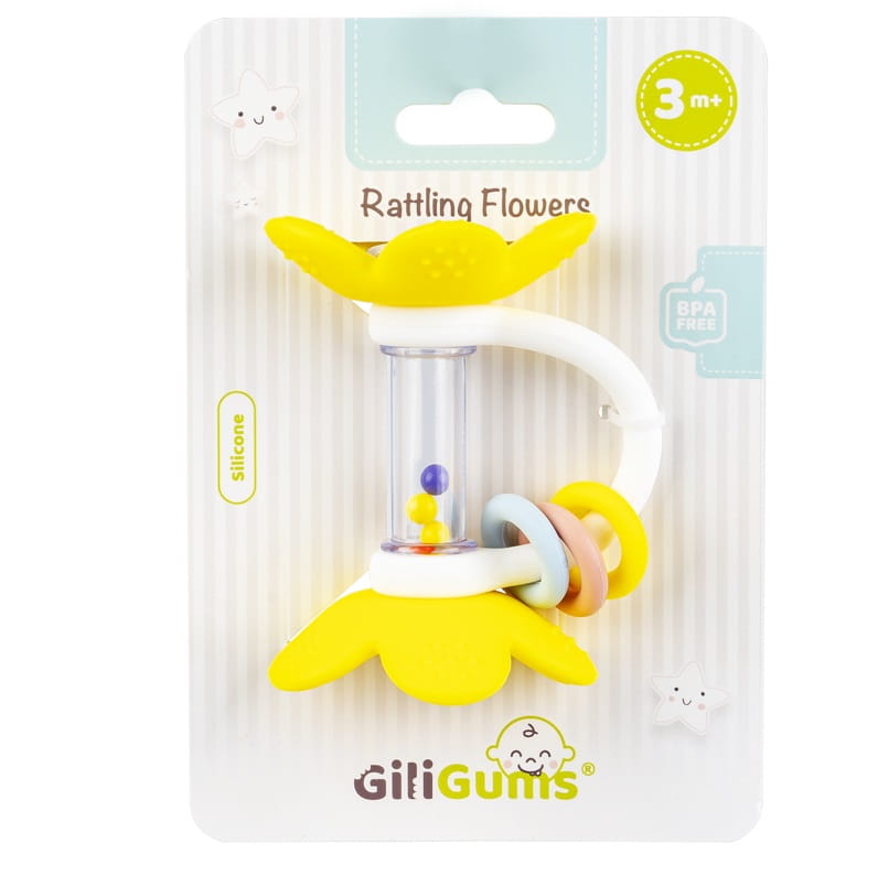 Giligums grzechotka gryzak grzechoczące kwiatki żółte 3M+
