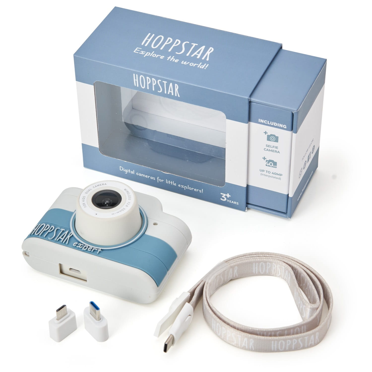 Aparat cyfrowy Expert Hoppstar to idealny aparat fotograficzny dla dzieci ze wszystkimi funkcjami potrzebnymi na co dzień: 40-megapikselowym obiektywem, dodatkowym aparatem do selfie, kartą pamięci 16 GB na 8000 zdjęć i funkcją kamery. Wyposażony w łatwe w obsłudze, intuicyjne menu oraz wymienne silikonowe etui chroniące przed uderzeniami i upadkami. Ten wyjątkowy aparat fotograficzny dla dzieci wykonany został z najwyższej jakości materiałów. Jest super-lekki i przyjemny w użyciu.