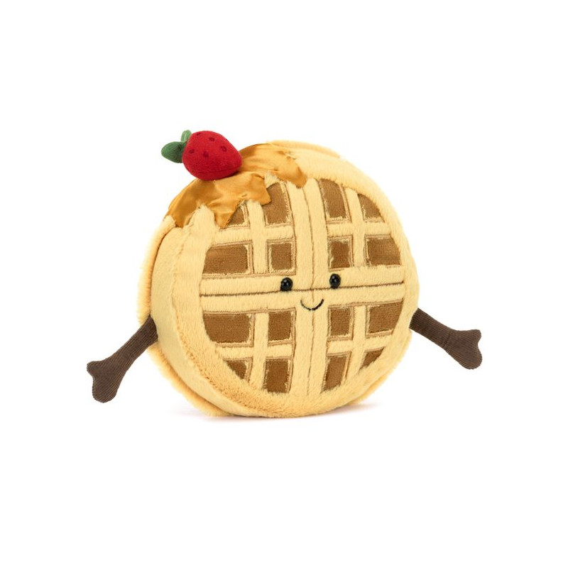Rozpocznij dzień z uśmiechem dzięki urokliwemu Gofrowi Rene marki Jellycat! W ciepłym, złocistym futerku, z haftowanymi detalami, Rene dumnie nosi jedwabisty kapelusik z syropu, zwieńczony truskawką. Z szerokim, wyhaftowanym uśmiechem i rączkami z delikatnego sztruksu, ten słodki pluszak wniesie odrobinę radości do każdego dnia!