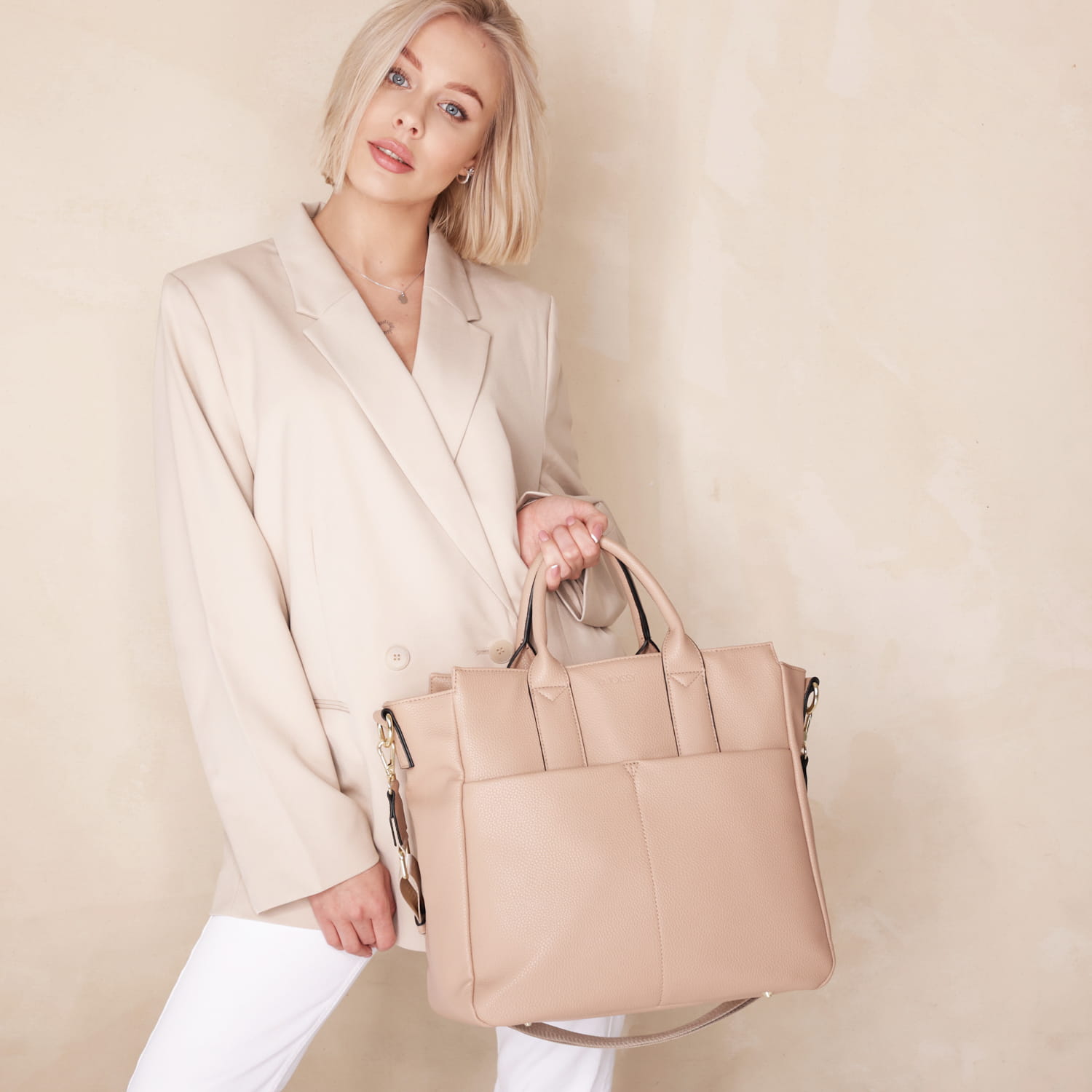 GINA to torebka o klasycznym kroju i przestronnym designie. Została stworzona z myślą o mamach, które cenią sobie praktyczność i elegancki wygląd torebki. Duża ilość kieszonek umożliwi ci zorganizowanie przestrzeni według twoich upodobań, a dwustronny design pozwoli na stworzenie nowych stylizacji bez potrzeby zmiany torebki.