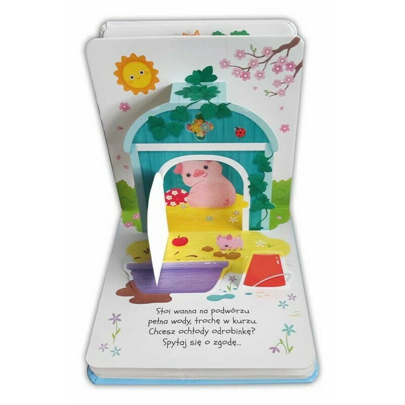 Zapraszamy na wieś, gdzie czekają zwierzęta w swoich domkach, a w okienkach kryją się ukryte niespodzianki. Czym prędzej zaglądnij do książeczki – każda strona to niezwykła przygoda z zabawnymi wierszykami i ciekawymi okienkami do odkrycia. Książeczka rozkładanka oraz otwierane okienka to doskonała zabawa dla każdego dziecka.