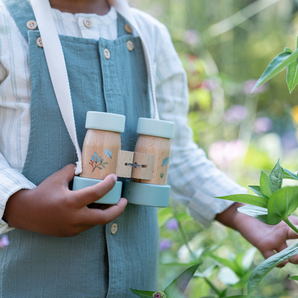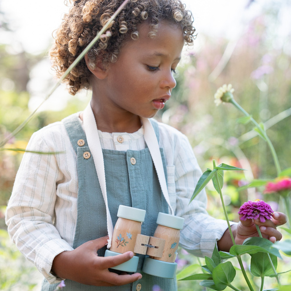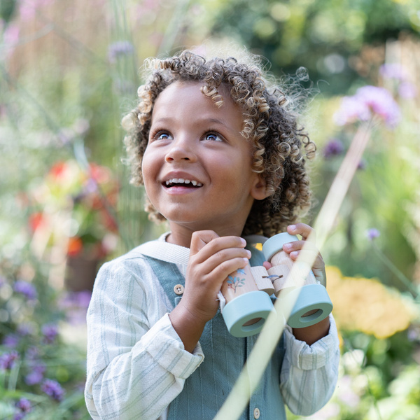 Lornetka Forest Friends od Little Dutch idealna dla małych odkrywców. Dzięki powiększeniu dzieci mogą dokładnie obserwować otaczający świat i przeżywać ekscytujące przygody. Lornetkę można dostosować do odległości między oczami, aby uzyskać optymalne widzenie. Bawełniany sznurek z zapięciem na rzep zapewnia bezpieczne zawieszenie lornetki na szyi, a uroku dodają jej piękne motywy kolekcji Forest Friends. Lornetka jest wspaniałym uzupełnieniem pozostałych produktów z Kolekcji Ogrodowej od Little Dutch.