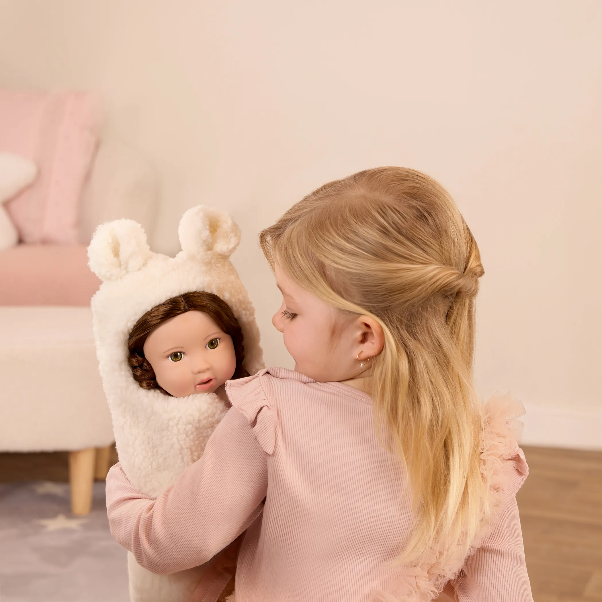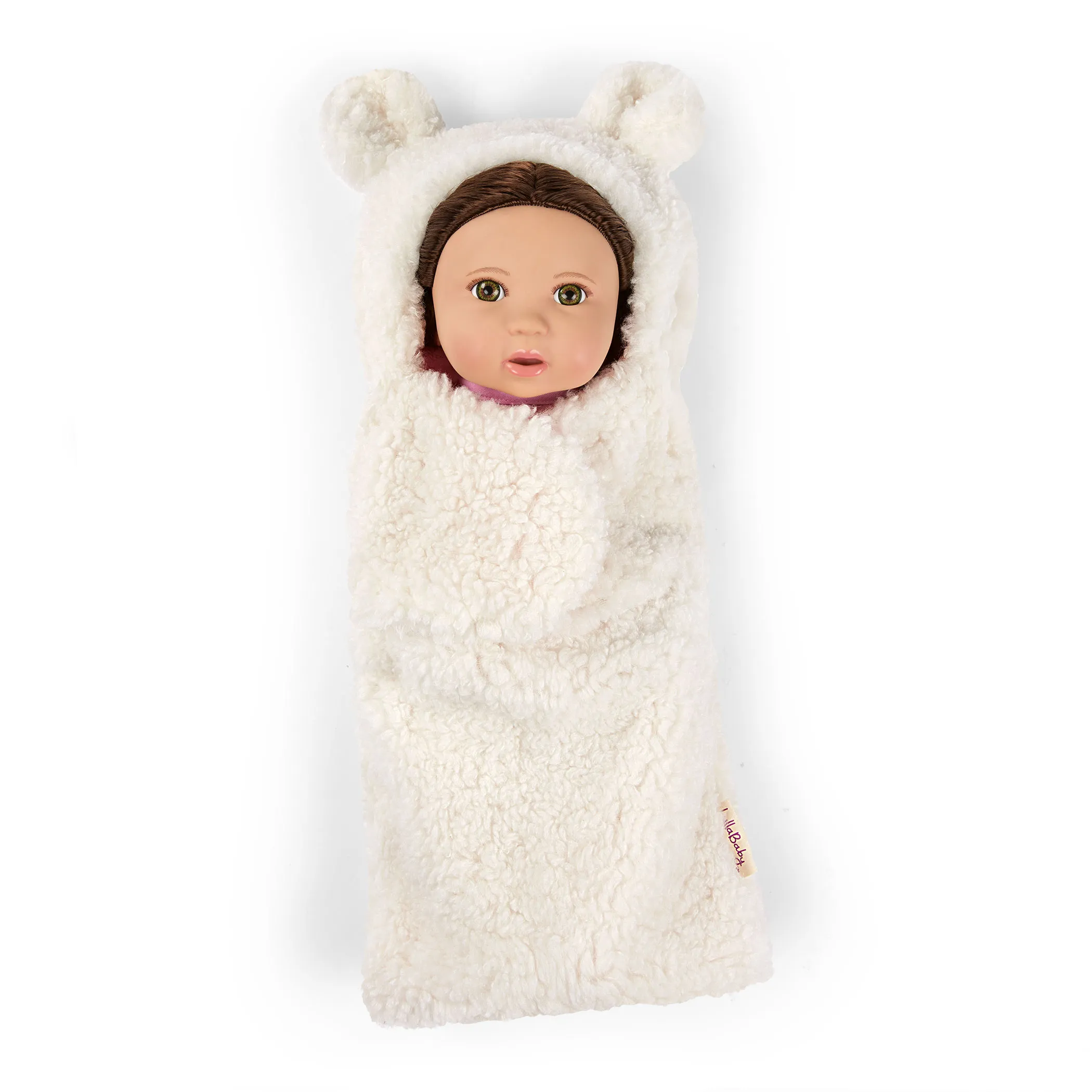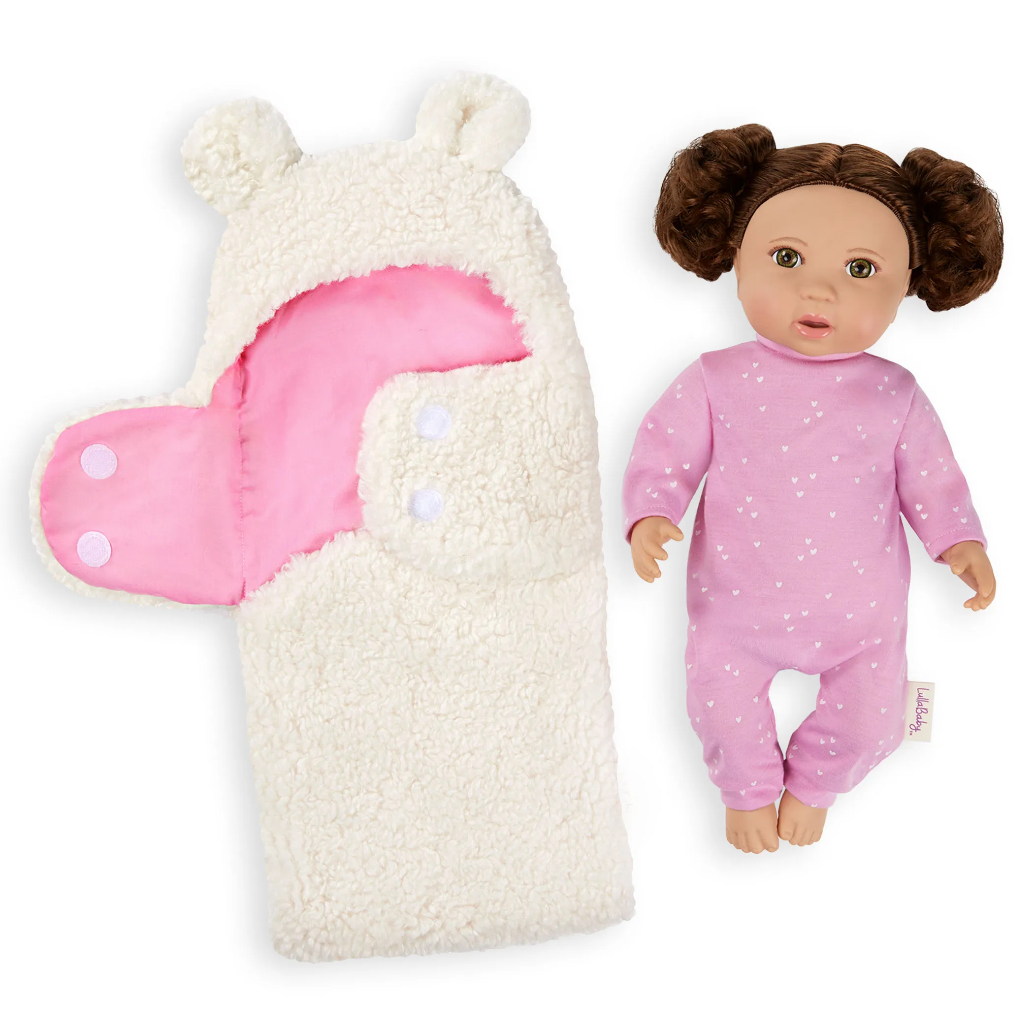 LullaBaby Lalka NIEMOWLĘ z WŁOSAMI, z misiowym BECIKIEM