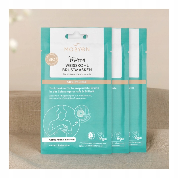 Maseczki na piersi Mabyen zostały stworzone dla mam karmiących, które zmagają się z napięciem, zastojem pokarmu, obrzękiem lub bólem piersi. Okłady w płachcie nasączone naturalnymi ekstraktami pomagają przynieść ulgę, wspierają regenerację skóry i poprawiają komfort podczas laktacji.