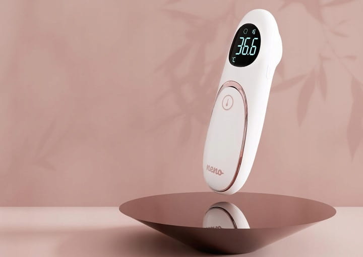 Termometr Neno Medic T06 ma elegancki, minimalistyczny design i ergonomiczny, opływowy kształt. Ze względu na swój niebanalny wygląd będzie doskonałym prezentem z okazji baby shower.
