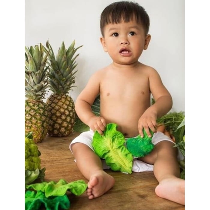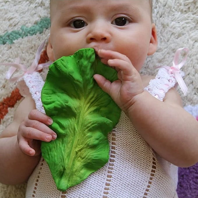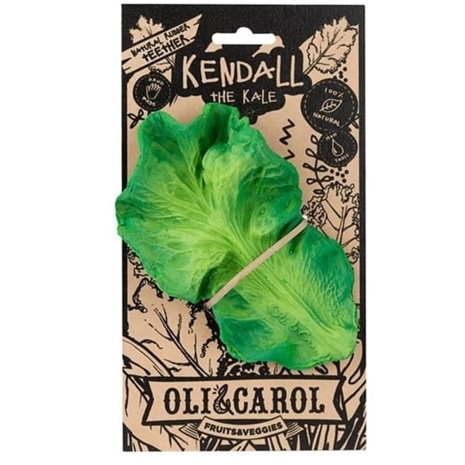 Gryzak zabawka Jarmuż Kendall marki Oli & Carol został wykonany z 100% naturalnego kauczuku i ręcznie malowany naturalnymi pigmentami z roślin. Jest to zabawka idealna do kąpieli, masowania dziąseł w czasie ząbkowania oraz zabawy sensorycznej.