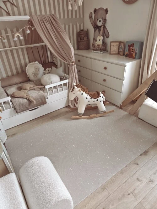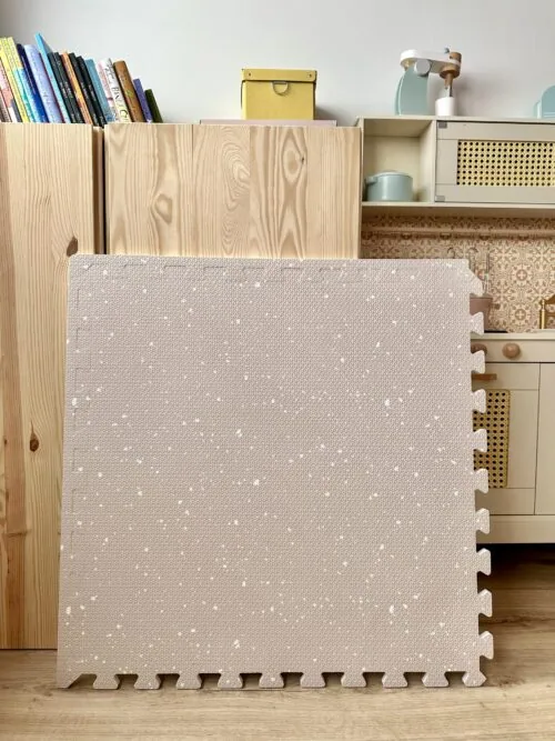 Łatwa w czyszczeniu i odporna na zabrudzenia mata piankowa dla dzieci TERRAZZO Sage sprawdzi się zarówno w pokoju dziecka, jak i w salonie, nie zakłócając harmonii wnętrza. Modułowa konstrukcja pozwala na dowolne łączenie puzzli, dzięki czemu możesz stworzyć matę o wymiarach idealnych dla Twojej przestrzeni.