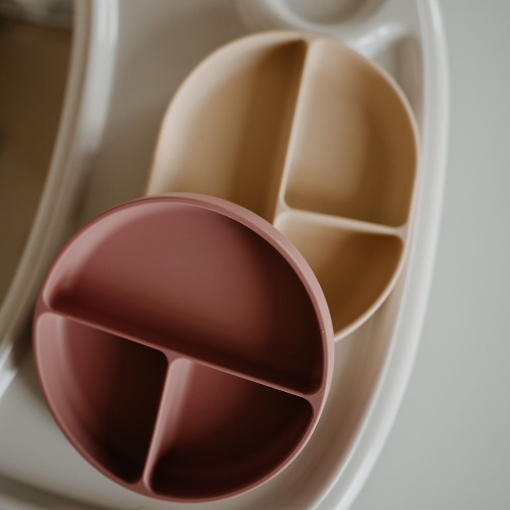 PETITE&MARS Silikonowy talerzyk z przegródkami i przyssawka / Latte