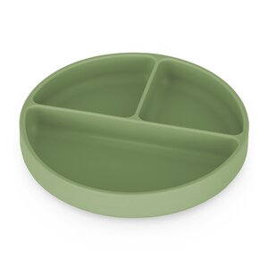 Praktyczny talerzyk został wykonany w całości z silikonu spożywczego bez BPA. Dzięki temu może być bezpiecznie używany do wszelkich pokarmów, zarówno ciepłych, jak i zimnych, a jedzenie można w nim bez obaw podgrzać w mikrofalówce czy przechować w lodówce. Trwały a zarazem miękki silikon sprawia, że nie trzeba się martwić o to, że talerzyk się rozbije, wyszczerbi czy odkształci – niezniszczony może być używany przez długi czas. Przeznaczony jest dla małych dzieci od 6 miesiąca życia, którym wprowadza się rozszerzoną dietę oraz takich które z powodzeniem uczą się już samodzielnego jedzenia. Talerzyk wyposażony jest w trzy trwałe przegrody, które pozwalają na podzielenie potraw na trzy oddzielne części. Tym sposobem konsystencje i kształty nie mieszają się na talerzu, co umożliwia łatwiejsze i bardziej estetyczne spożywanie pokarmów przez dziecko. Dodatkowym ułatwieniem dla małego użytkownika są zaokrąglone kształty.