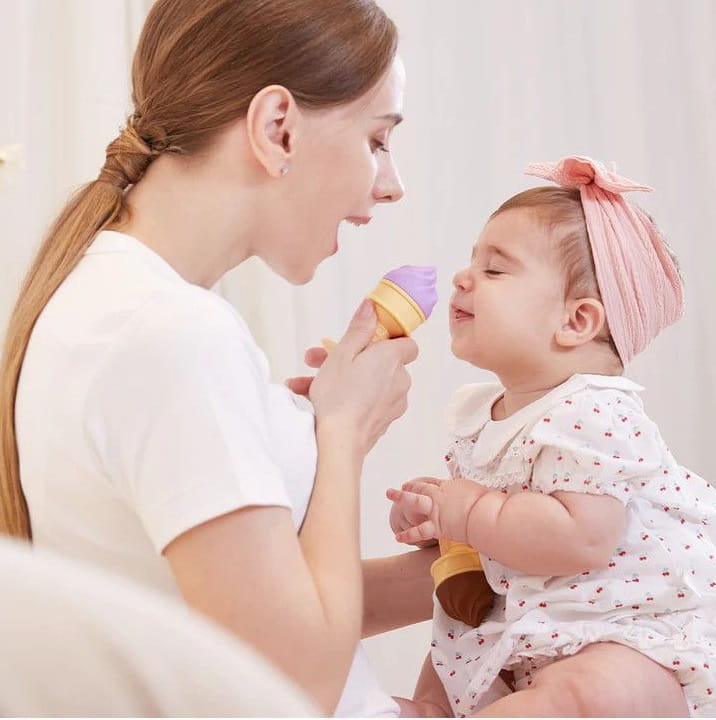 Gryzak chłodzący Smily Mia w kształcie smakowitego loda, został stworzony po to, by jeszcze lepiej łagodzić ból i dyskomfort związany z ząbkowaniem. Wystarczy go rozkręcić, wlać wodę do zbiorniczka, umieścić zbiorniczek w zamrażarce, aż do momentu zamarznięcia, następnie wyjąć go, skręcić gryzak i podać dziecku. Maluch nie odmówi sobie pysznych lodów, które dodatkowo schłodzą jego dziąsła, przynosząc ulgę w ząbkowaniu.
