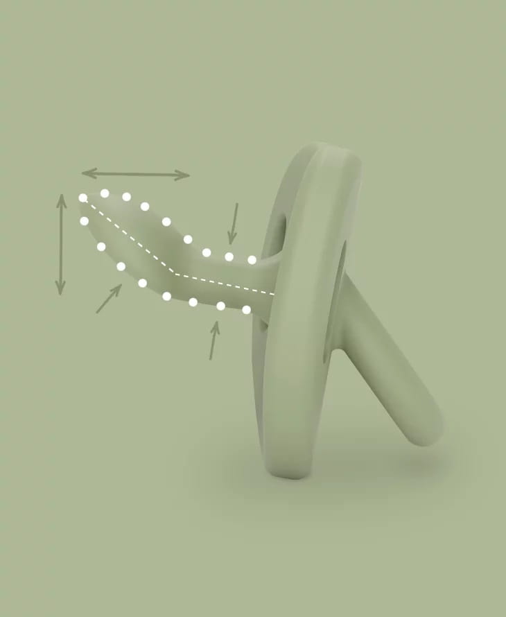 Pozwala dziecku na niemal całkowite zamknięcie ust i lepiej rozkłada nacisk wywierany na dziąsła i zęby.