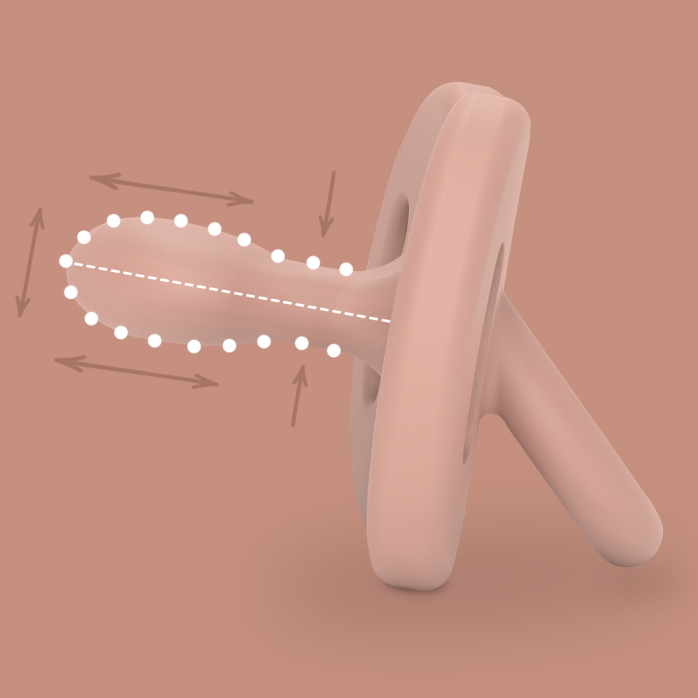 Zaprojektowane z poszanowaniem naturalnego układu jamy ustnej noworodka, aby zapewniał jak najbardziej naturalne uczucie podczas ssania. Dzięki płaskiej budowie smoczka, dziecko niemal nie odczuwa jego obecności.