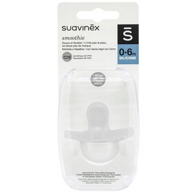 SUAVINEX SMOCZEK SILIKONOWY FIZJOLOGICZNY SX PRO 0-6M TRANSPARENTNY