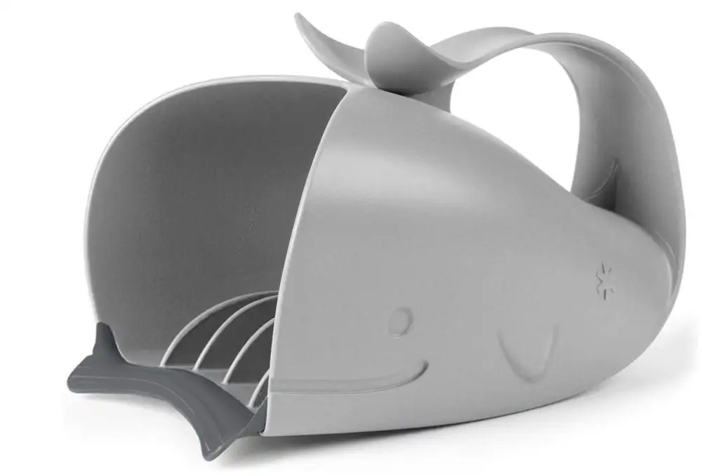 Innowacyjny kubek SKIP HOP MOBY został zaprojektowany z myślą o dzieciach, dla których mycie główki nie jest ulubionym momentem podczas kąpieli. Zabawny Wielorybek pomaga odgonić strachy i dba o to, by w czasie spłukiwania włosów, oczy i buzia pozostały suche. Podczas płukania wystarczy napełnić brzuszek Wielorybka czystą wodą i przyłożyć miękką, elastyczną krawędź do czoła dziecka – cała zawartość kubeczka delikatnie spłynie tylko po włosach. MOBY jest bardzo pojemny, więc płukanie trwa bardzo szybko. Po kończonym zabiegu odkładamy Wielorybka do wyschnięcia stawiając go na pyszczku lub wieszając na haczyku za ogonek.