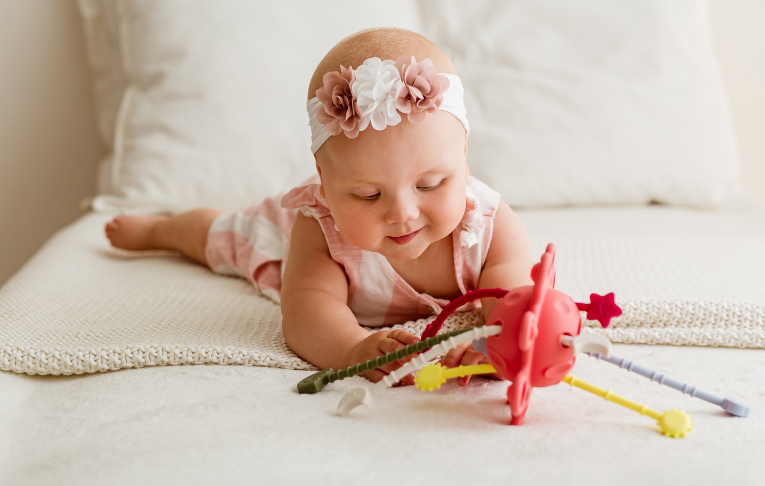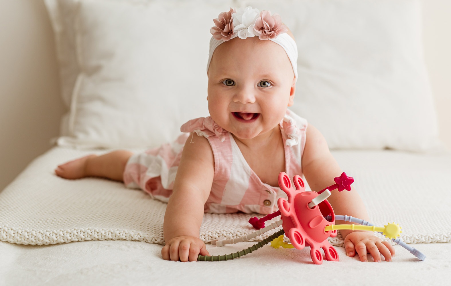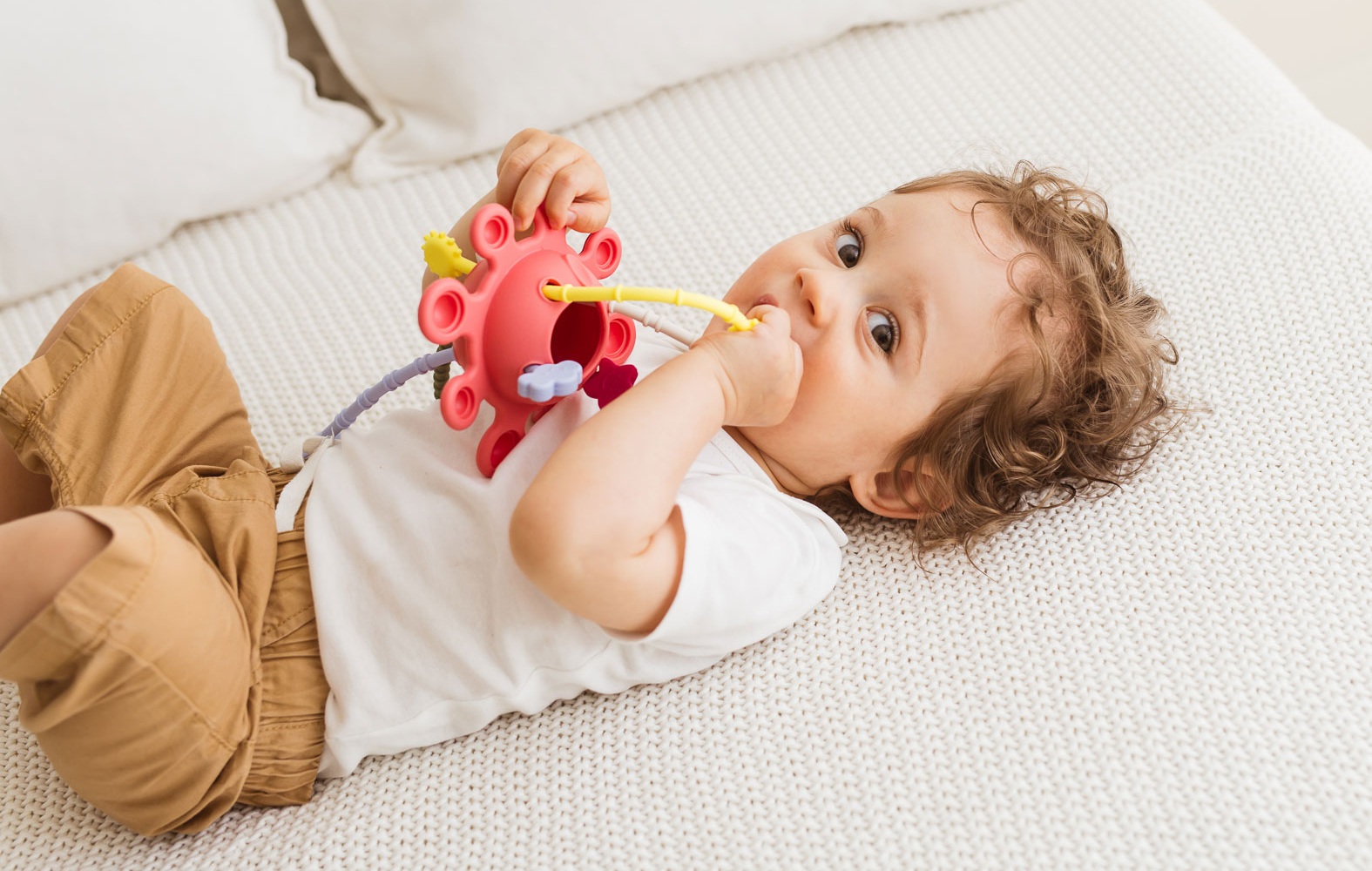Hej, maluszku, pora na kosmiczną przygodę! Galaktyka to mięciutka zabawka wyposażona w kuleczki do wciskania. Czynność ta pomaga maluchom ćwiczyć precyzję i sprawność paluszków. Jakby tego było mało, na miłośników odlotowej zabawy, czekają tu też kolorowe linki do przeciągania, a każda z nich zakończona jest innym kształtem.