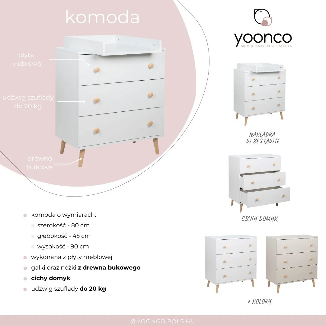 Yoonco Komoda do pokoju dziecięcego z nakładką beż/buk