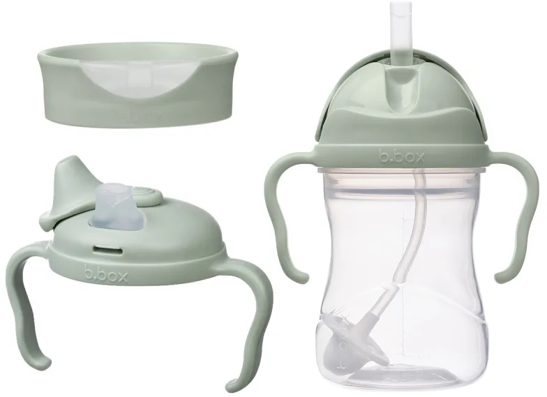 b.box - kubek do picia 3w1, kubek ze słomką, bidon, kubek treningowy 240 ml | Sage