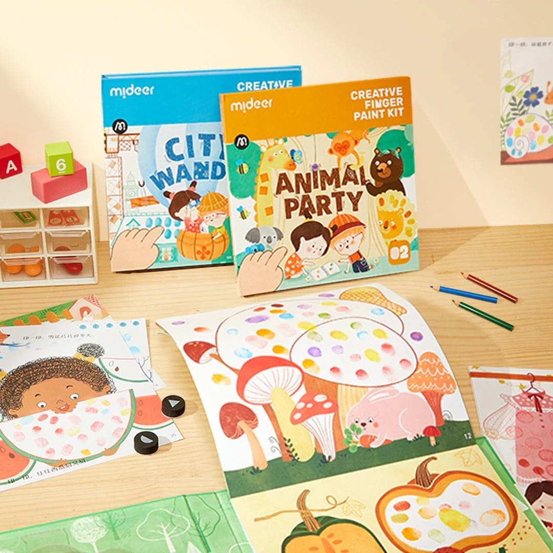 Zaawansowany zestaw został stworzony z myślą o pełnym opanowaniu malowania palcami, sztuki stempli oraz rysowania kredkami.
